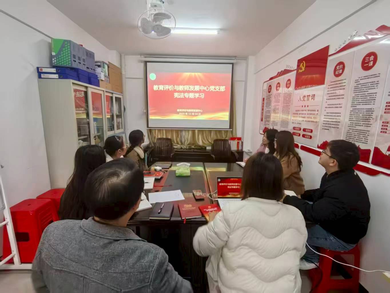为大力弘扬宪法精神,增强全体教职工法治观念,2025年12月3日下午,教育评价与教师发展中心(高等教育研究所)党支部在百城校区党员活动室成功举办宪法学习专题活动。部门全体成员参加了本次学习。