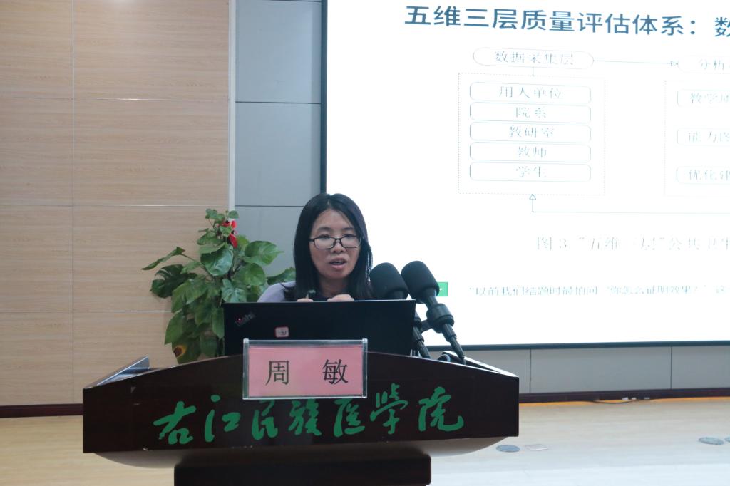 在申报经验分享会上,古贤君副主任医师以《数字叙事双赋能:新医科视域下临床实习“三阶五维”教学体系构建与实践》项目为例,围绕课题方向凝练、研究团队构建、申报材料撰写、专家咨询借力、申报统筹谋划五大核心环节,系统分享了教改项目申报经验。她强调将“数字+叙事”双赋能融入临床教学实践,同时,从团队构建、材料撰写等方面给出实操指引,为教师申报教改项目提供了参考。周敏教授则以《人工智能视域下基层公共卫生人才培养体系的探索与实践》项目为例,她强调,项目选题需以“痛点”为切入点,提炼出社会的核心问题,确保课题兼具创新性与实践价值。在方案设计方面,她详细拆解了如何通过课程改革适配AI时代人才培养需求,如何搭建数字化教学平台、完善多元评价体系,为相关领域申报者提供了思路。