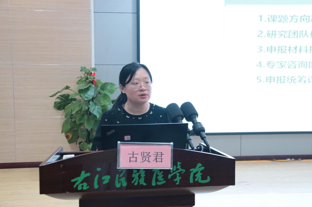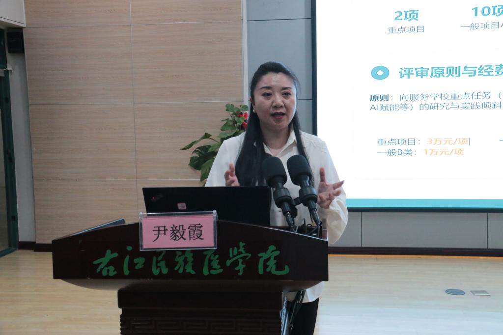 在申报指导会上,尹毅霞所长就2026年广西教改工程项目申报做了全面系统的解读与指导。其中,她聚焦申报范围与重点,强调选题需紧扣政策导向,结合教学实践找切入点;并从申报书的撰写过程,提醒教师聚焦核心问题、提炼创新突破、量化预期成效;为参会教师开展2026年教改项目申报提供方法指引。